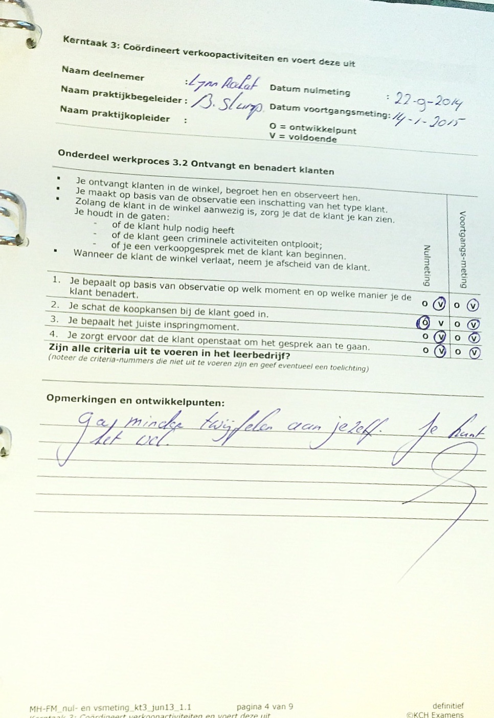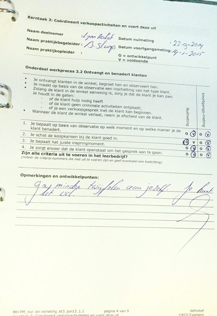 Ik ben in 2014 begonnen aan de opleiding Filiaalmanager mbo niveau 4 aan het Menso Alting in Zwolle. Deze opleiding heb ik versneld gedaan en in 2016 heb ik de opleiding afgerond. Ik deed de opleiding in de BBL vorm, dit houdt in werken en leren. Ik werkte bij Nelson Emmeloord, dit is een schoenenwinkel. Op deze pagina zijn bewijzen te vinden van mijn prestaties. Geschreven door mijn collega’s, mijn werkgever en mijn docenten. Tijdens de opleiding filiaalmanager heb ik gewerkt aan de competenties  5,9 en 10.